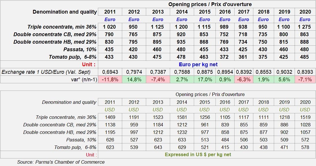 Quotations for this month of October 2020 are almost perfectly in line with the consolidation recorded over the last three seasons, taking the price level of Italian double-concentrated CB paste (for example) to more than EUR 860/tonne, which is almost 8% above the opening price of October 2019 and almost 15% above the average of the three previous “opening quotations”.