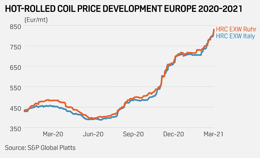 Whereas the price of a tonne of steel from blast furnace installations was recorded at approximately EUR 250 before November, the same quantity was being negotiated at around EUR 600 during the first semester of 2021.
