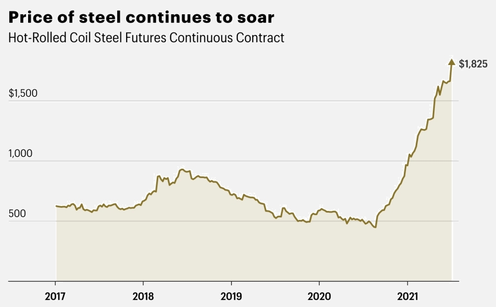 US steel prices up over 200% and expected to remain high into 2022