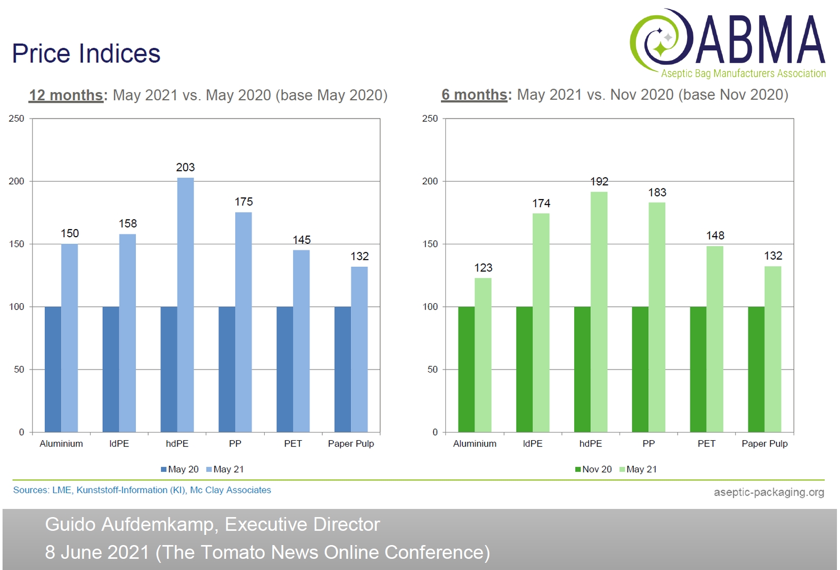 Indicators for the price of paper pulp, aluminum, polymers – price indexes (aluminum, ldPE hdPE, PP, PET, Paper Pulp).