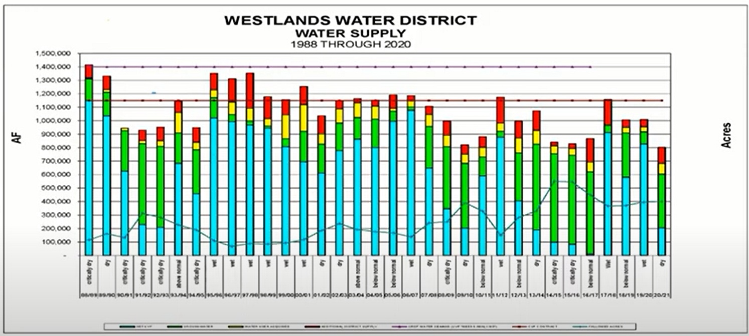 (Source: Tomato News)As for the Westlands Water District, located in western Fresno County, it contains about 600,000 acres in production of various crops. It is really a good indicator of what is happening throughout the State with surface water allocations and groundwater pumping.