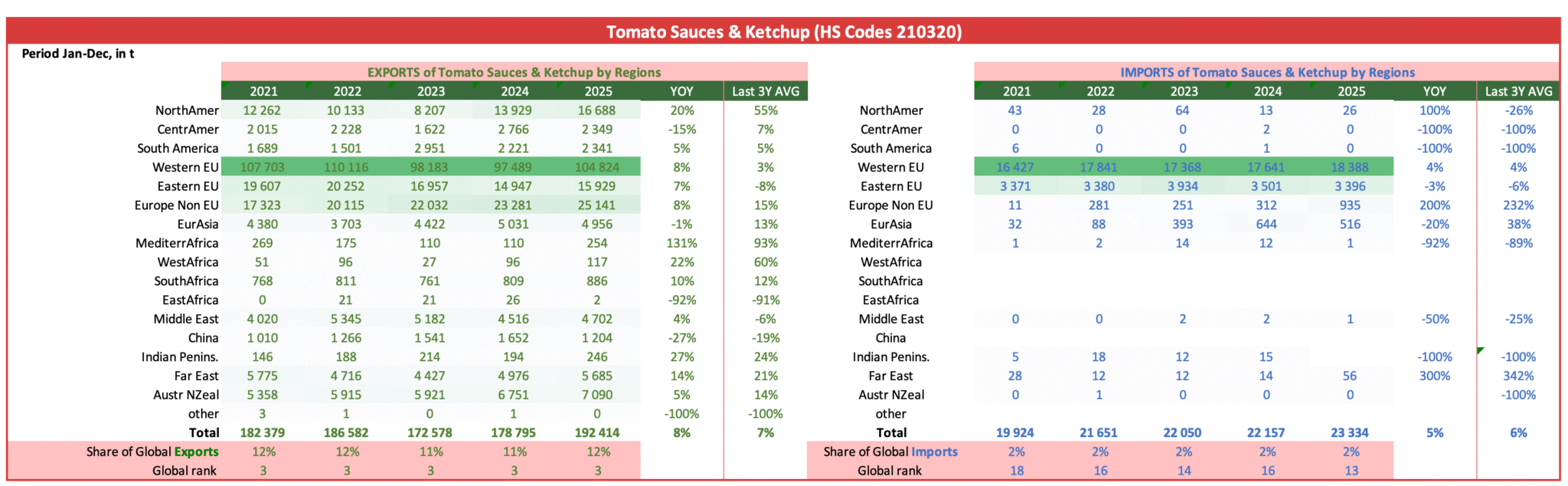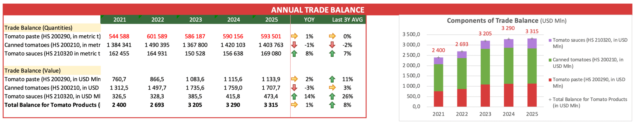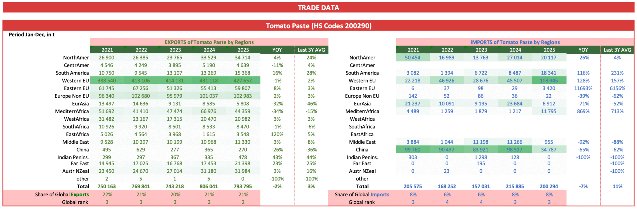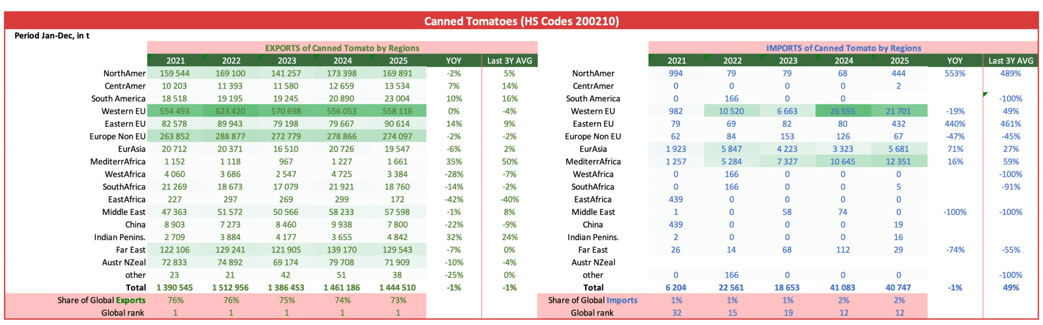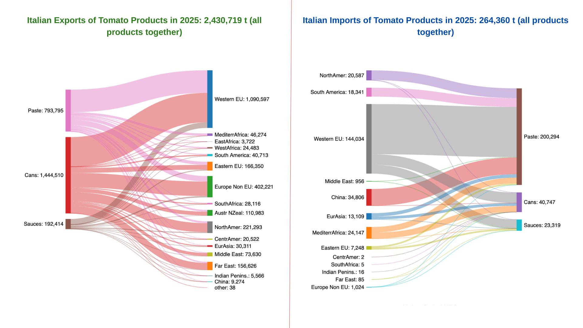 Italy benefits from a large domestic market, with strong brands and a strong image for quality which makes it popular also abroad. It is by far the largest exporter of canned tomatoes, with about 1.5 million tonnes annually, and the second of tomato paste with about 750 000 tonnes.