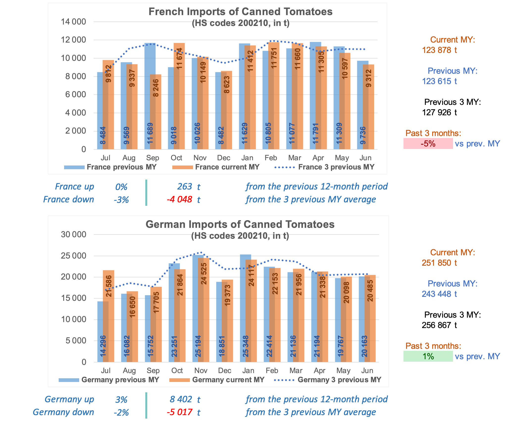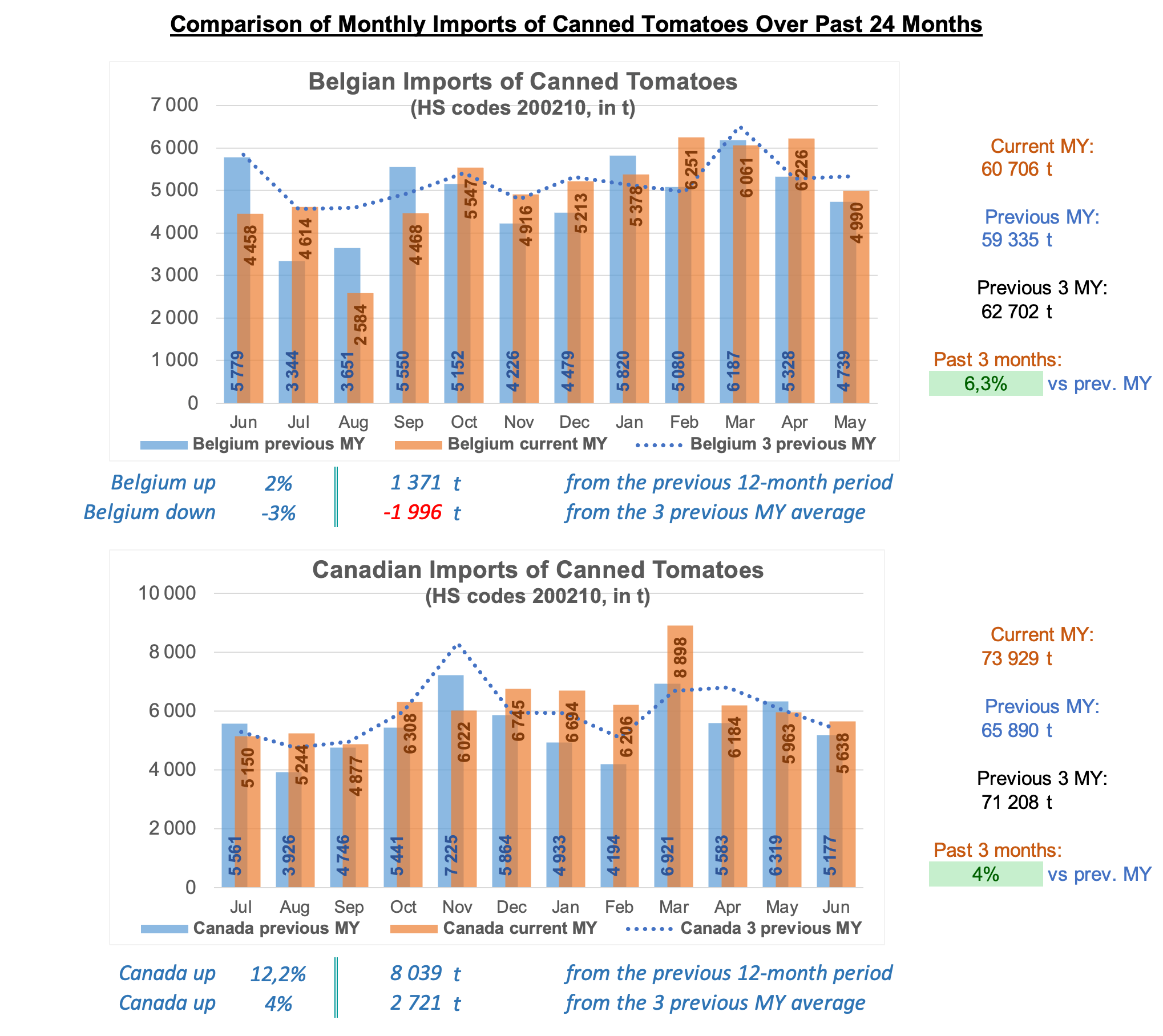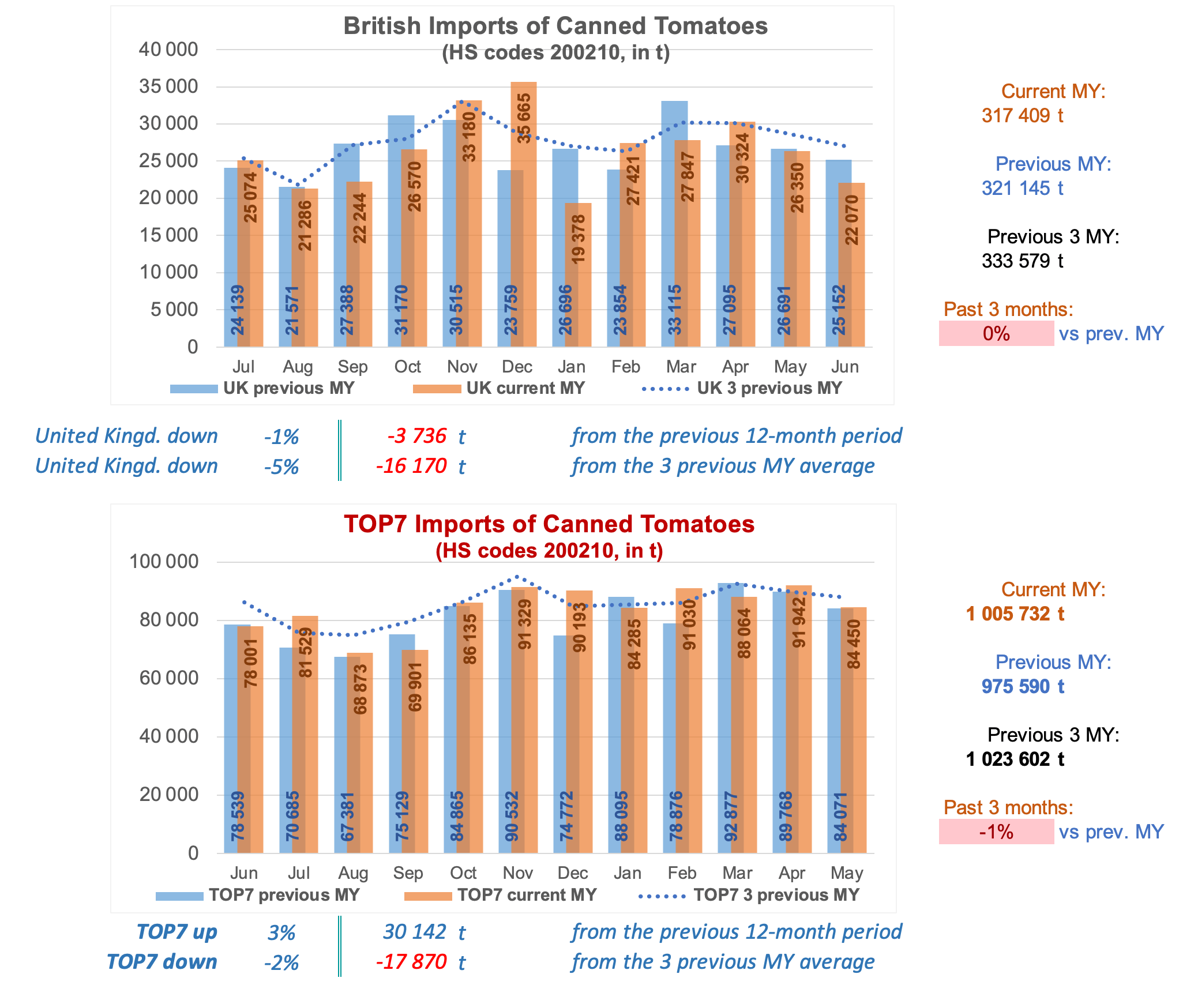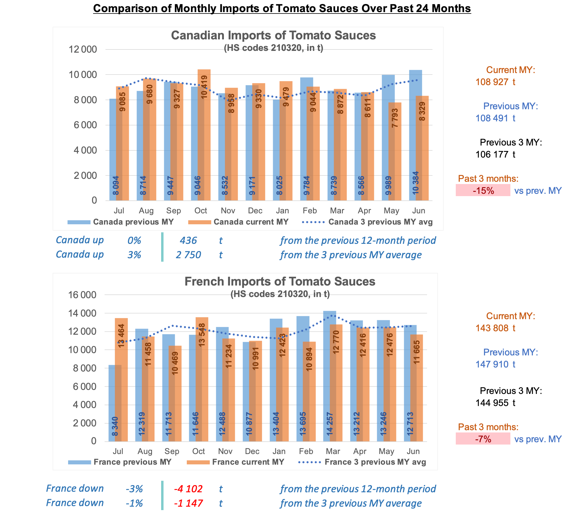 Comparison of monthly imports over past two years