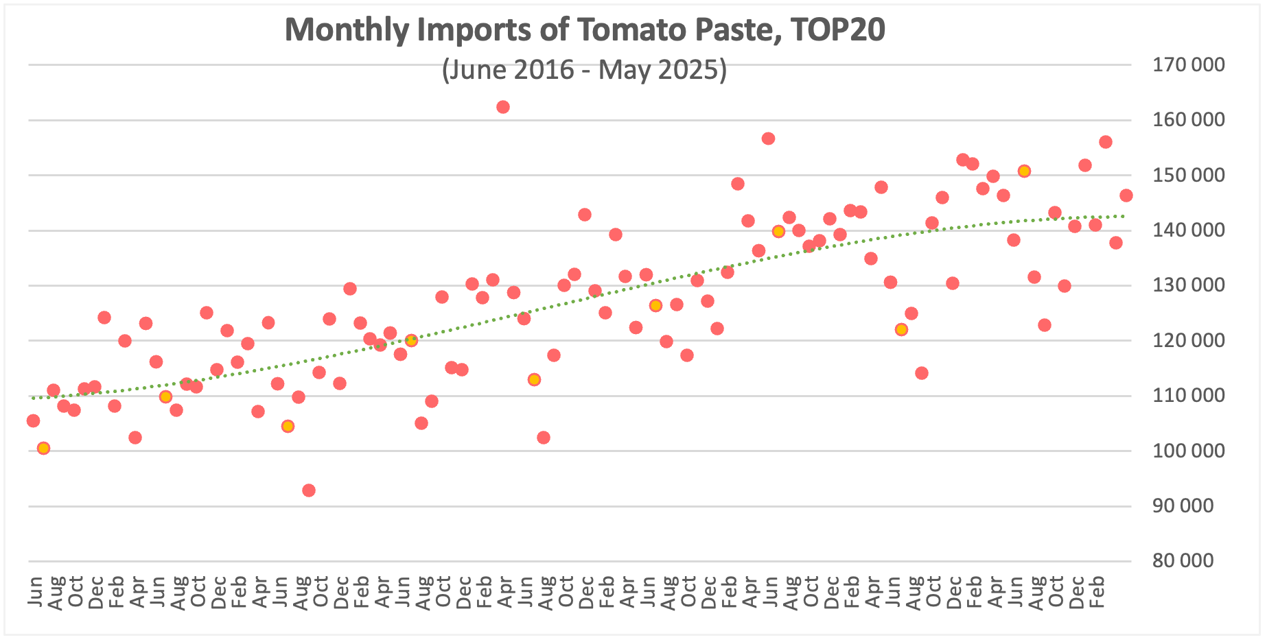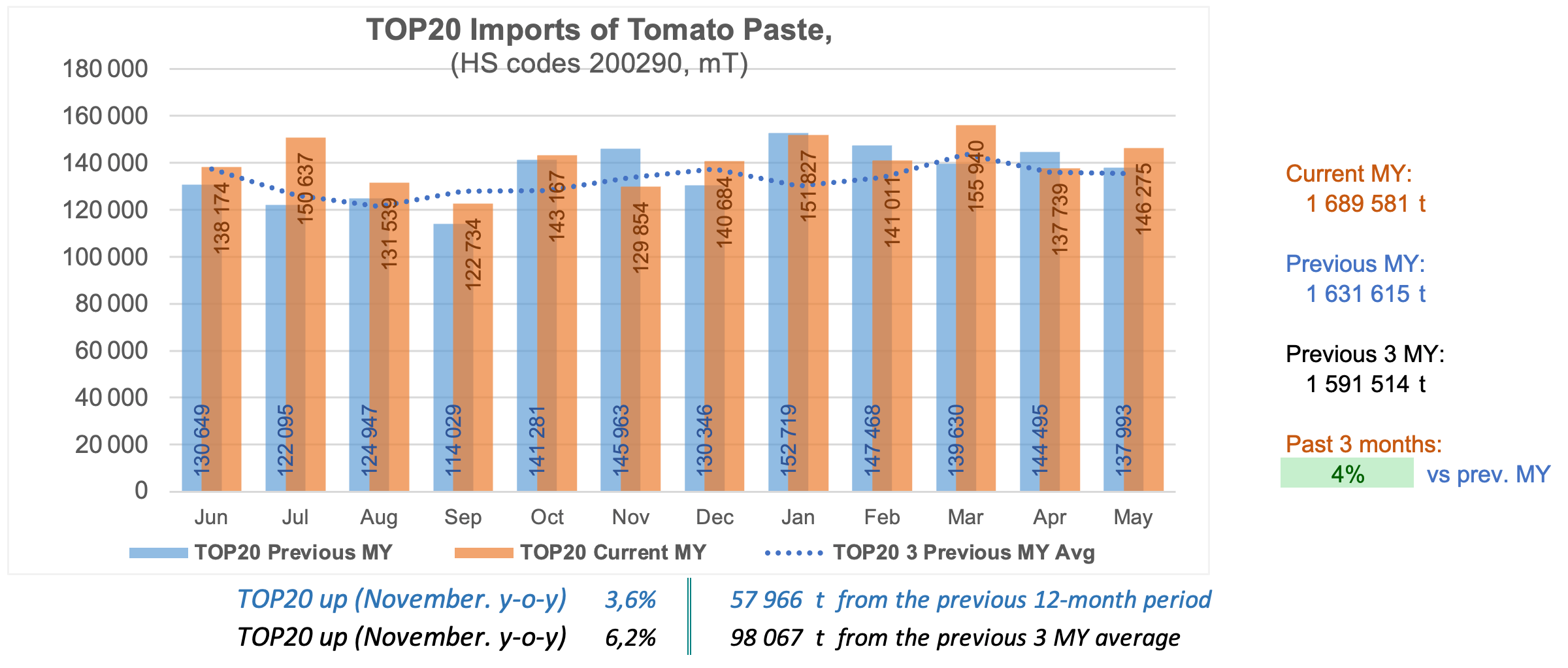TOP20 monthly imports of tomato paste