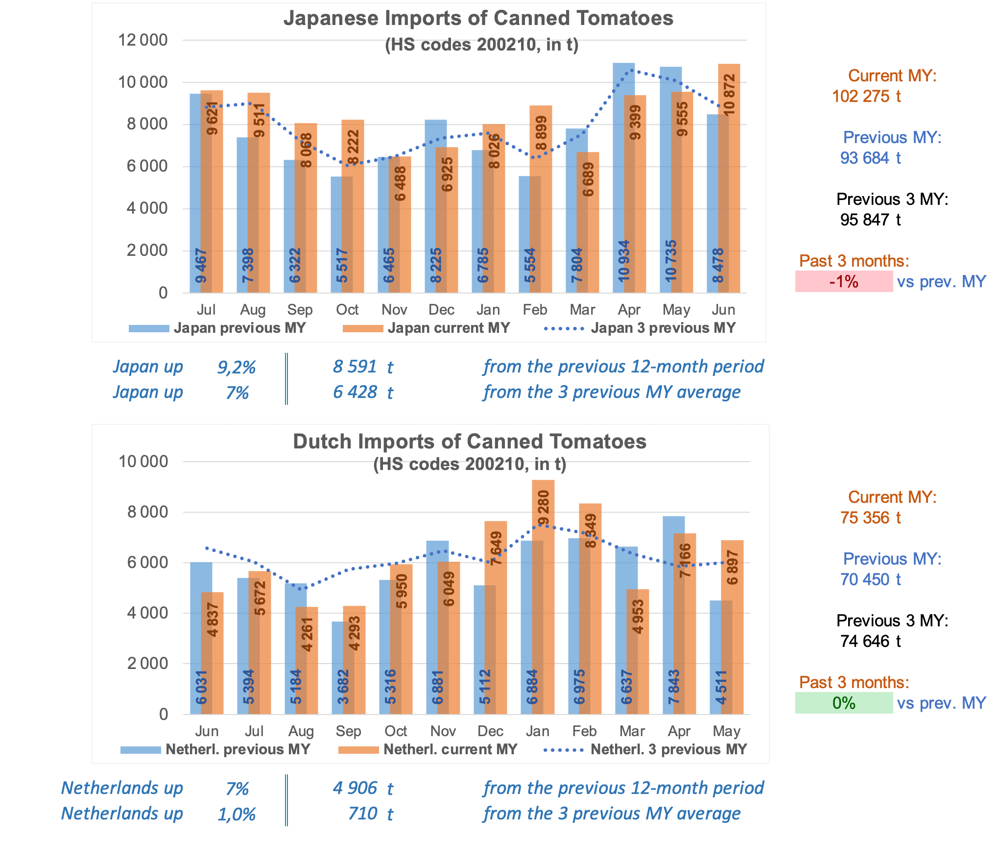 Along with its monthly summaries of the prices for pastes and canned tomatoes and of the performances of the world’s main tomato paste exporting countries (see linked articles below), Tomato News is presenting updated figures of the supply volumes shipped each month by the main consumer markets for tomato products.