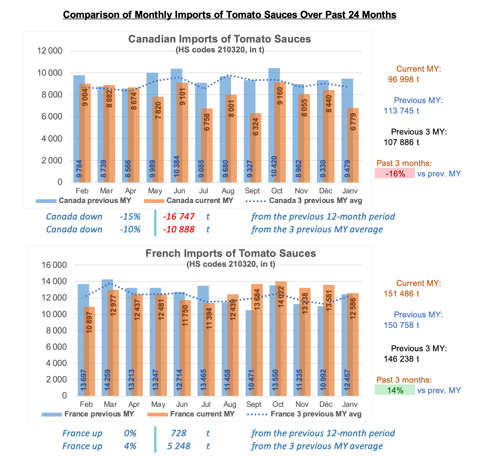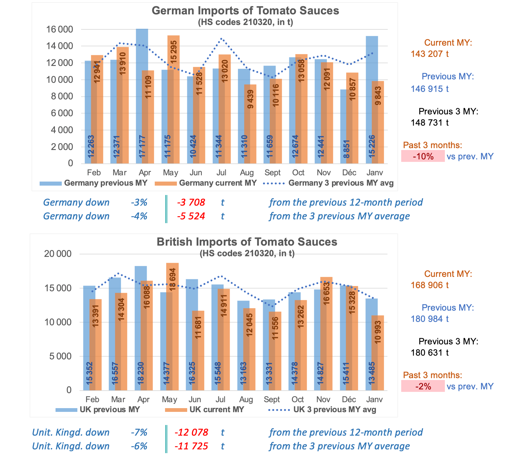 For tomato paste, alongside the combined figures for the Top20 importing countries, this article presents data for France, Germany, Japan, the Netherlands, Poland, Russia and the United Kingdom; canned tomato imports for Belgium, Canada, France, Germany, Japan, the Netherlands and the UK; and finally sauces & ketchup imports for Canada, France, Germany, the United Kingdom and the US. This provides a regular and representative overview of the situation and trends of global demand.