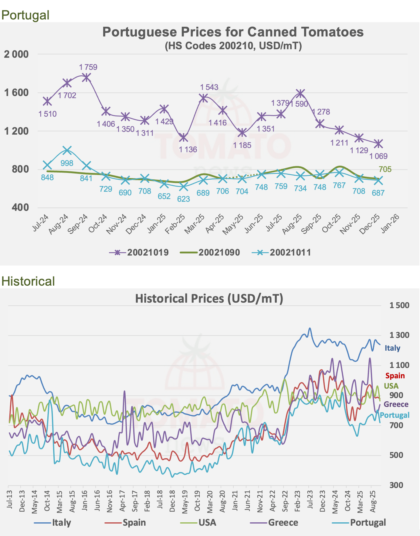 Canned Tomatoes Prices, Exports from Italy, Spain, USA, Greece and Portugal, Last update March 19, 2026