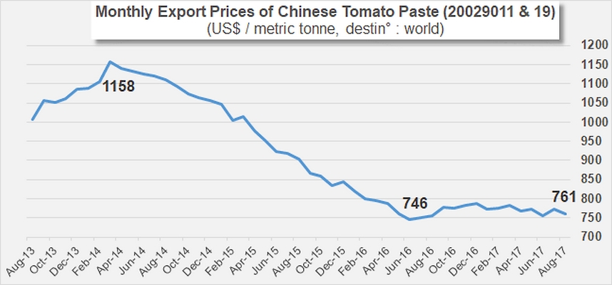 The long hoped-for recovery of tomato product prices during the "2017 harvest" will have to wait: among other reference indicators, the quotations published by the Parma Chamber of Commerce on 6 October indicate a further contraction in euro prices, though it is less marked than the drops observed in October 2015 and October 2016. However, it contributes to bringing down the value of European products, below the levels that the industry already considered as extremely low last June at the end of the previous marketing year.