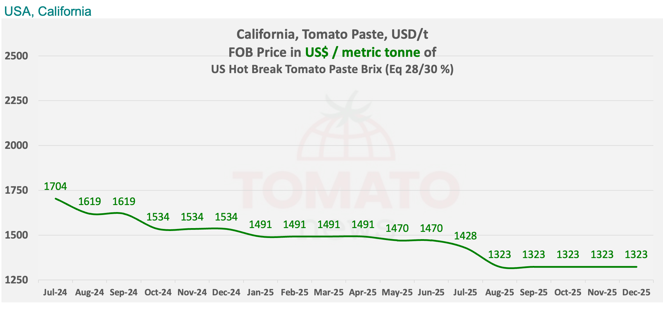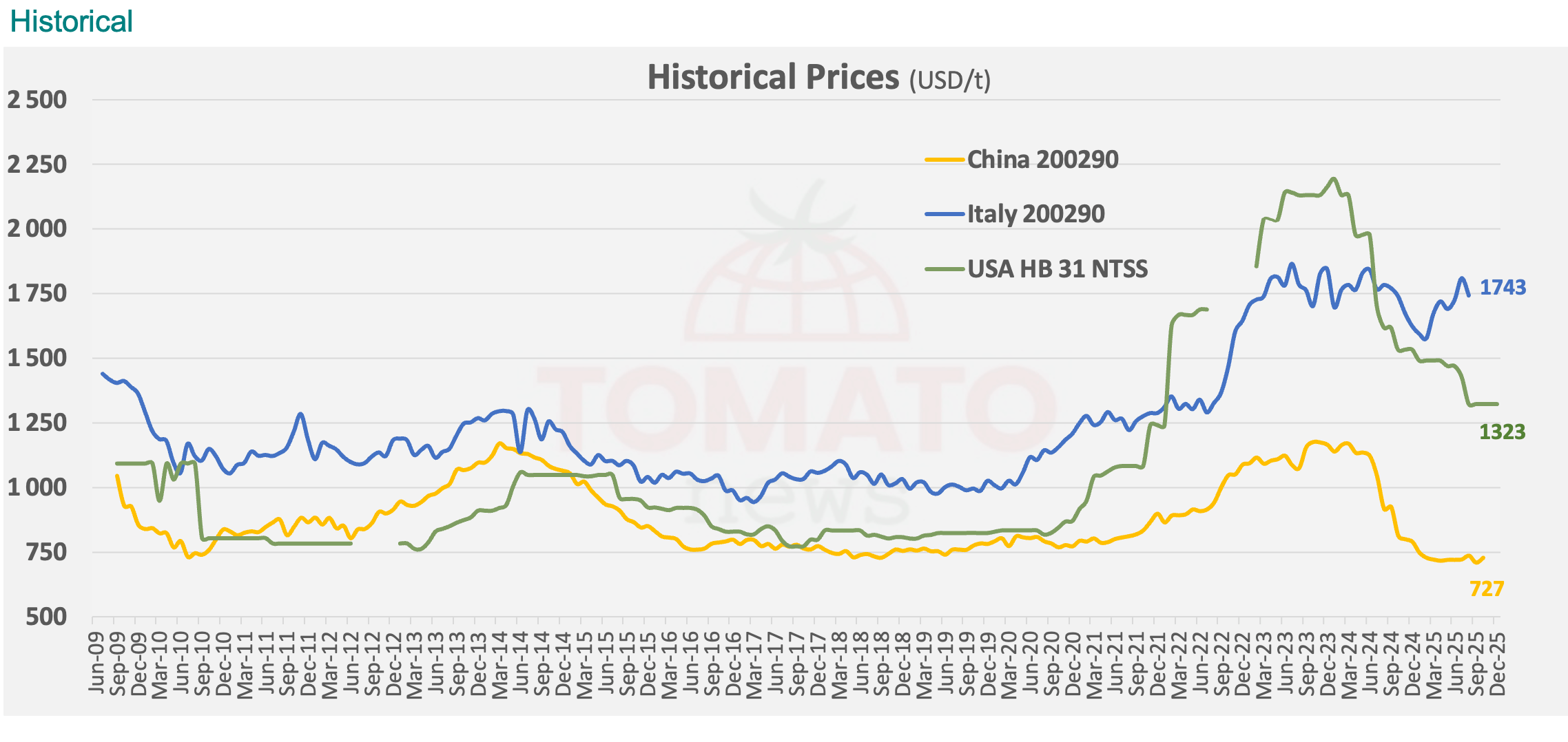 Tomato Paste Prices, Last update December 04, 2025 (Spain, Portugal, Italy, China, Chile and USA)