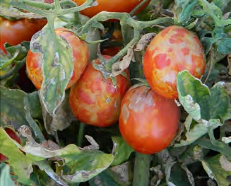A single gene resistance (SW5) has been incorporated into many varieties of commercial processing tomatoes as well as fresh market ones. It is possible to observe 3% TSWV expression even in a resistant variety, due to a non-resistance breaking strain. Also, under very heavy virus pressure, there may be abnormal disease expression of brown concentric rings on the fruit in the absence of symptoms on the leaves.