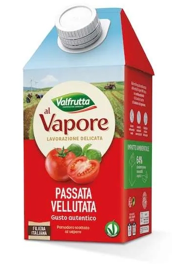 The first stage of this innovation in the Valfrutta al Vapore range concerns the graphic restyling of the Passata Vellutata in a 1000 g carton and of the Pulpa Fine in the 390 g Tetra Recart format. A renewal that has made it possible to standardize all the “red” ranges under the Valfrutta brand, with the aim of further reducing the impact on the environment. Both packages in fact present excellent characteristics from the point of view of sustainability, such as the high percentage of vegetable raw materials they are composed of (64% for the 1000 carton, over 70% for the Tetra Recart) and the fact that they are recyclable in most Italian municipalities. Furthermore, the Tetra Recart has an 83% lower impact on carbon dioxide emissions compared to jar and can packaging (source: LCA studies – Italy) and is FSC® certified (paper obtained from responsibly managed forests). A series of green “pluses” that highlight Valfrutta's attention to the environment and that, combined with the recommended retail price (RPR) – 1.29 euros for the 1000 g carton and 0.79 euros for the 390 g Tetra Recart – make this product very interesting for the consumer.