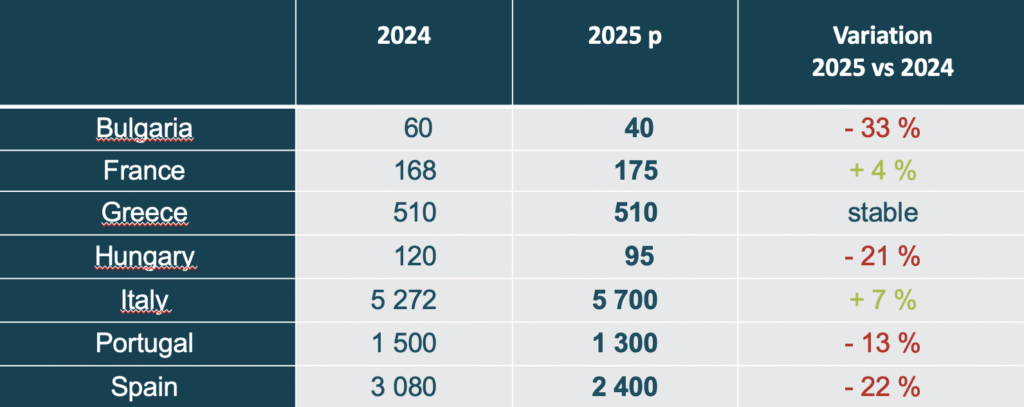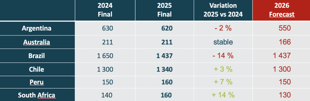 The forecast for the 2026 season is not clear, but the first estimate is 130,000 tonnes or even less, a 20% decline on the total volumes for 2026.
