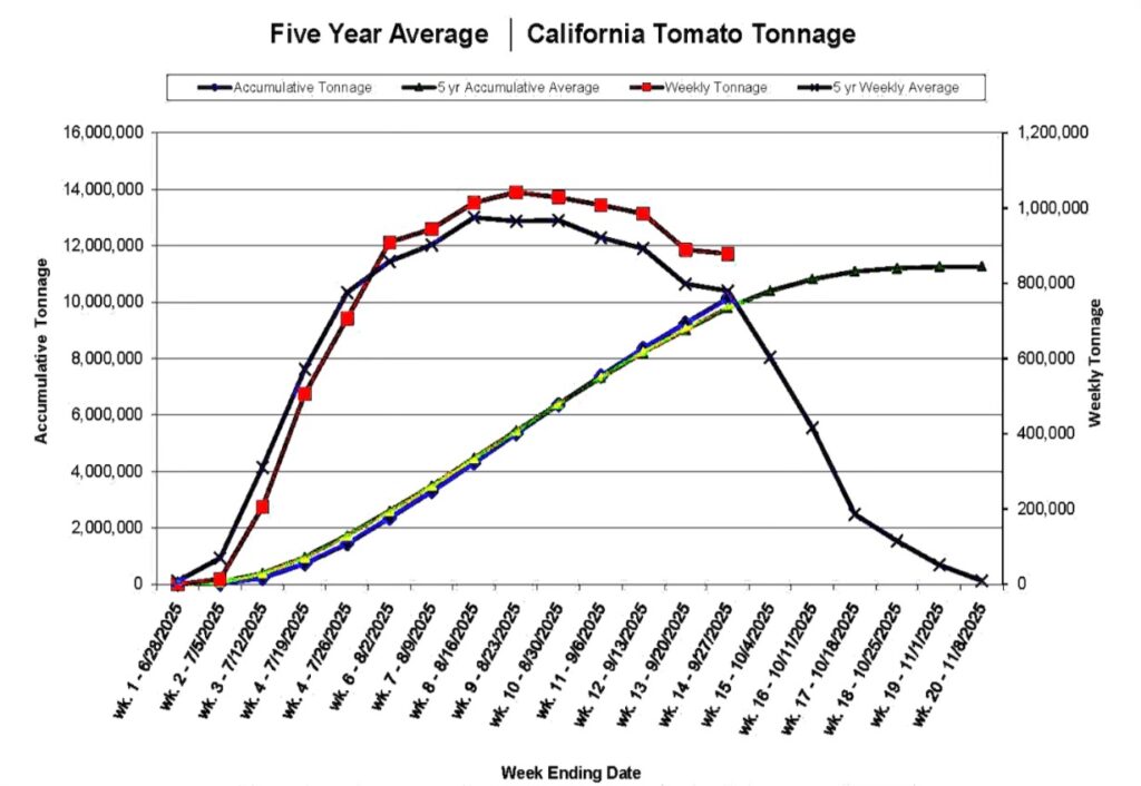 WPTC members during their Board meeting and the 2025 Tomato News Conference on 5 October 2025 established the preliminary world production estimate for 2025 at just below 40.3 million tonnes, down 12% from the 45.8 million tonnes processed globally in 2024.