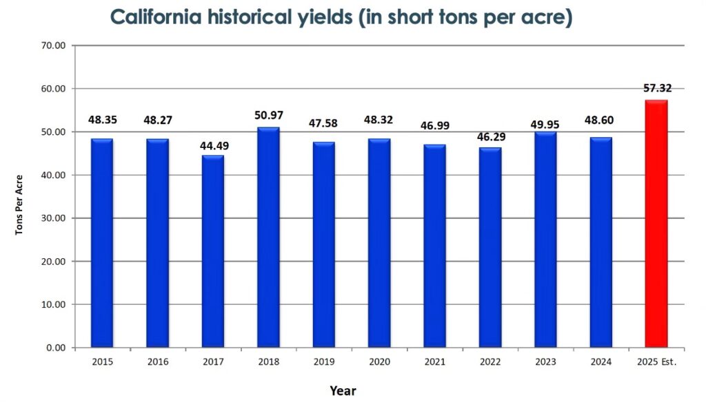 This all translated to very little stress for the crop at any point in the season. This allowed for a 18.75% increase in yield from our historical 5 year average. In consequence, the production estimate has been raised to 11.75 million short tons, 10.65 million metric tonnes.