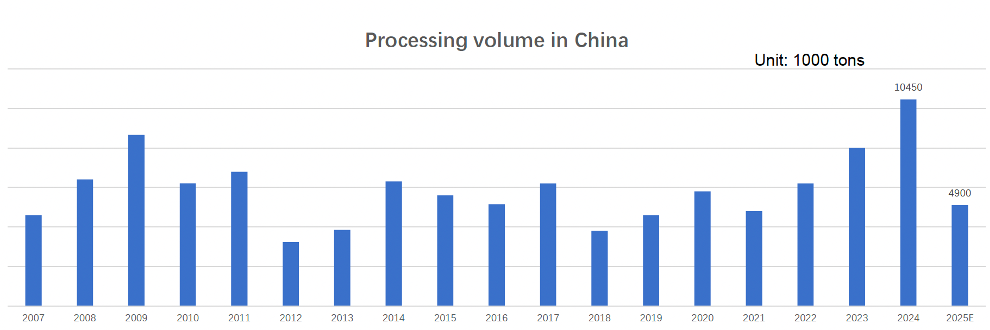 - The reasonable production level for China is between 6-8 million tonnes over the past 20 years.