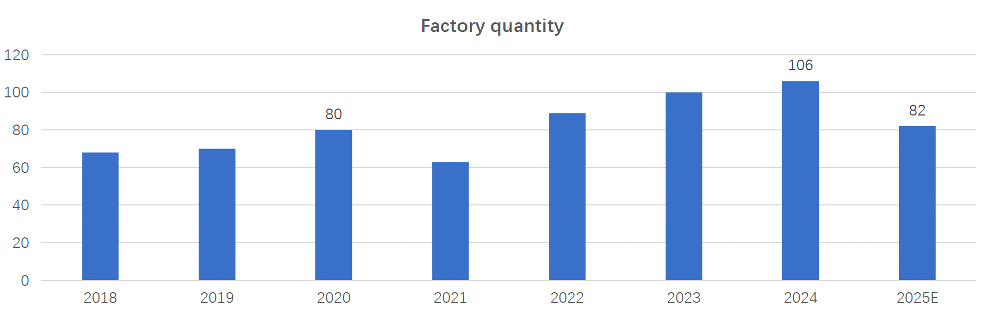 82 factories were running, a decrease of 24 compared to the 2024 crop, equivalent to the 2020 level. The daily capacity is 214,000 tonnes, a decrease of 60,000 tonnes compared to 2024 (-22%).