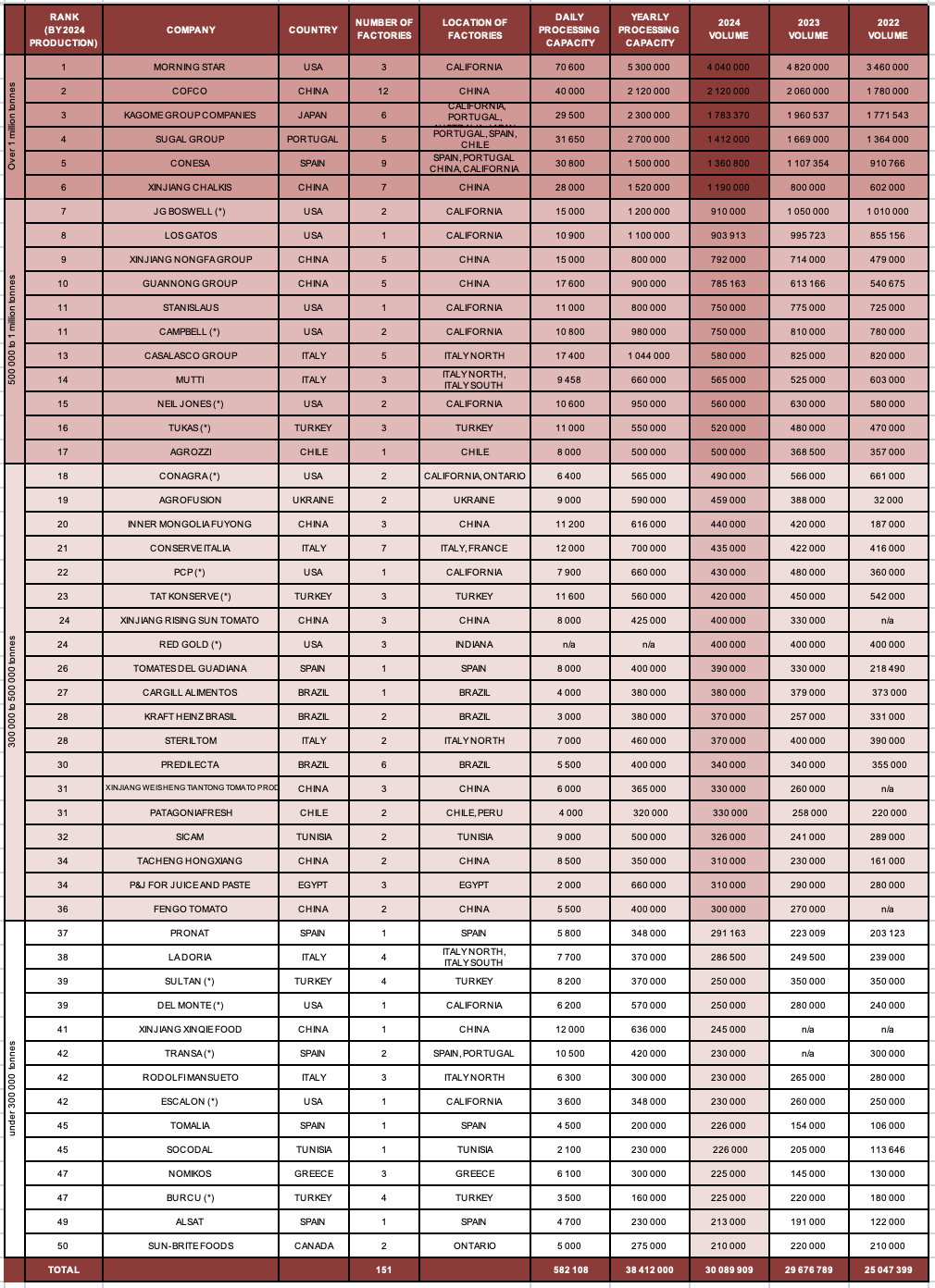 - Article amended on 25/04/2025 to amend the name of the company ranked 36 from "Tiancheng Tomato Products" to "Fengo Tomato"